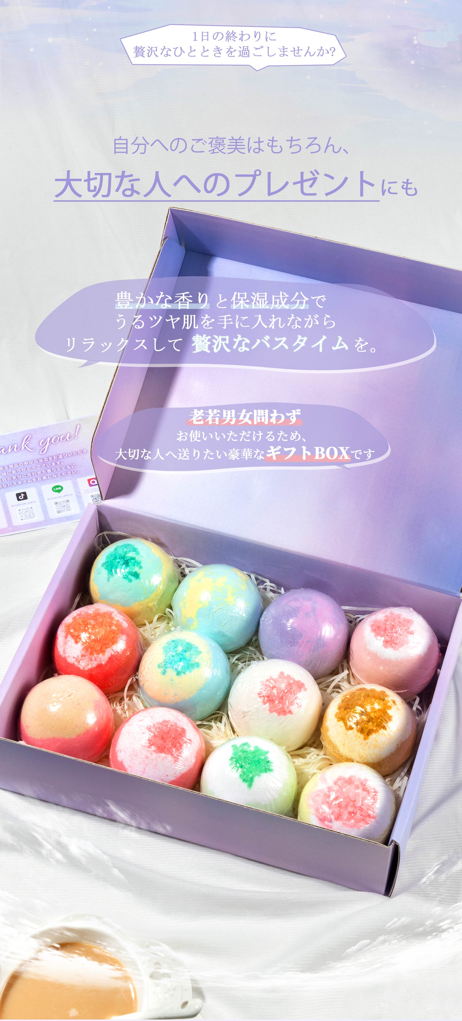 ・毎日頑張っている自分や大切な人のバスタイムを、贅沢なひとときに変えるバスボムBOX。