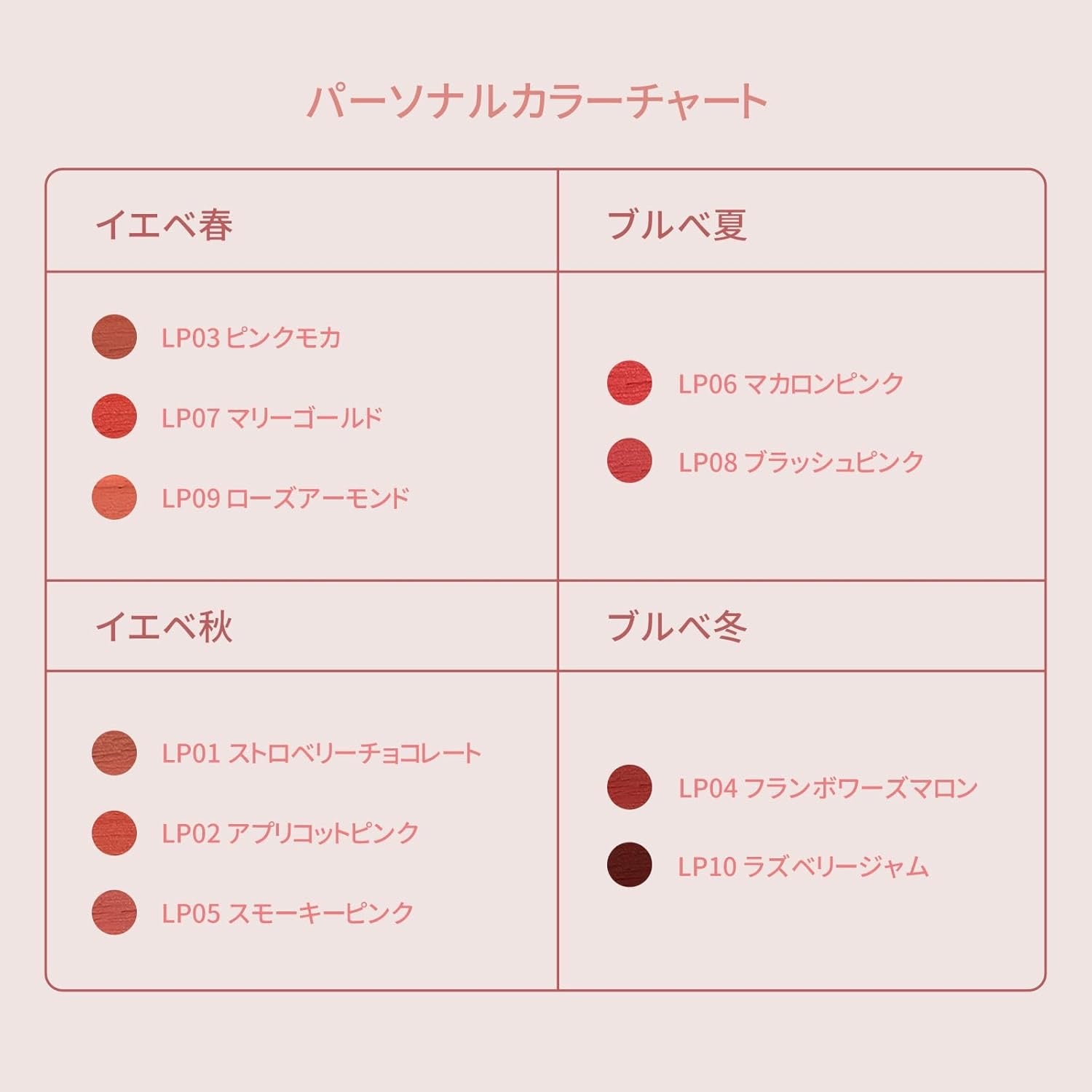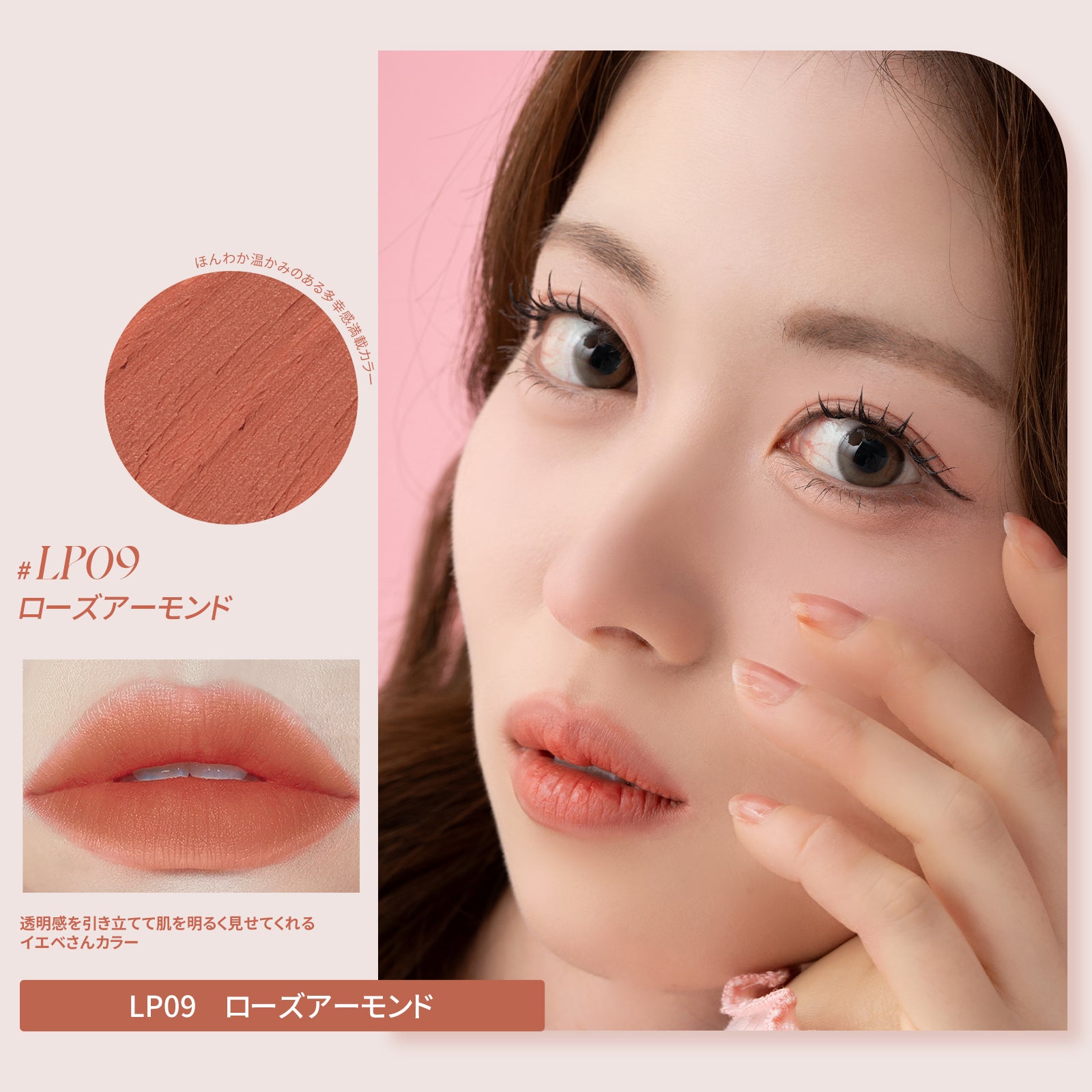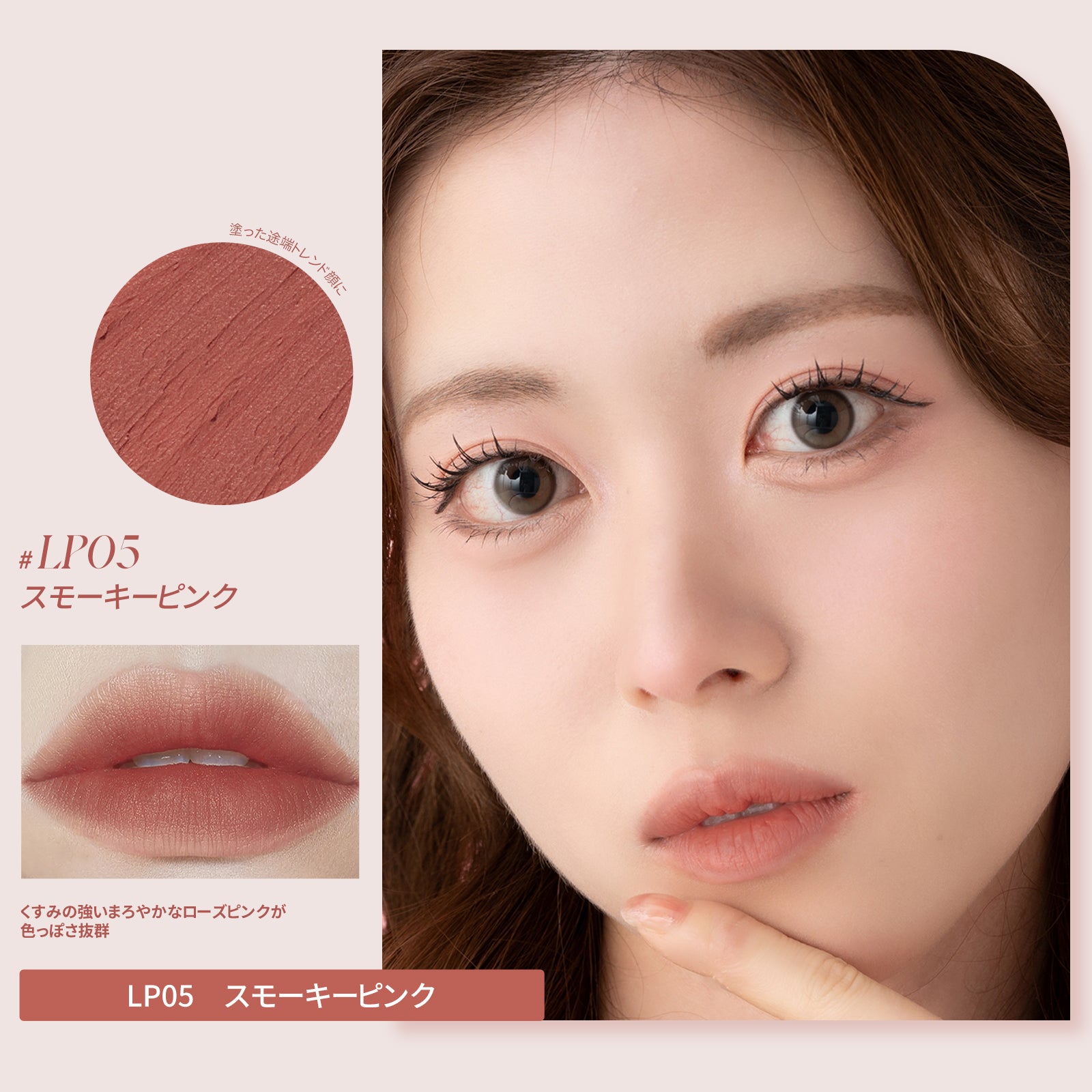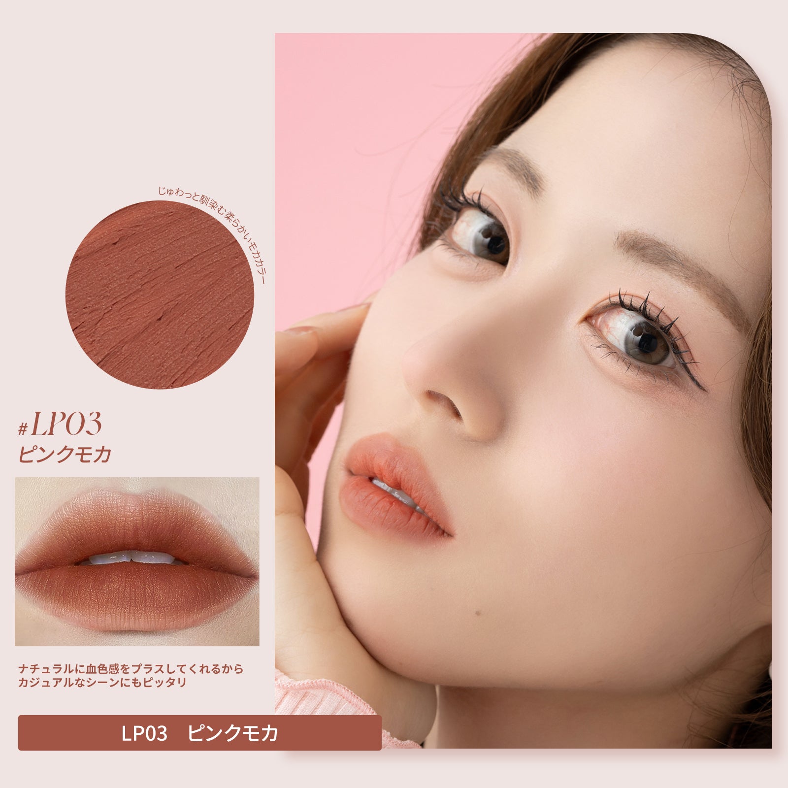 ・LEPOREMのリップは、マット感としっとり保湿を両立。唇にみずみずしい潤いをたっぷりと与え、縦ジワをカバーし、唇を柔らかくなめらかで軽い状態に。